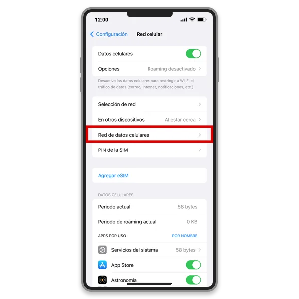 2. Pulse[Red celular]o[Datos celulares](el nombre puede variar según su región y la versión de iOS).