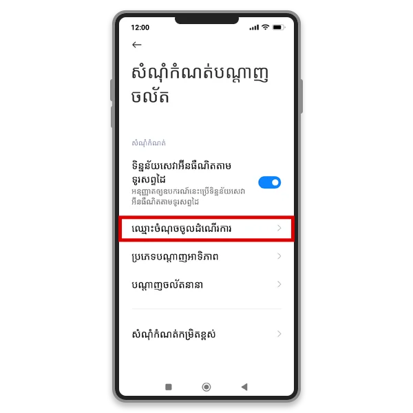 2. ចូលទៅកាន់ការកំណត់ស៊ីម ឬបណ្តាញ៖