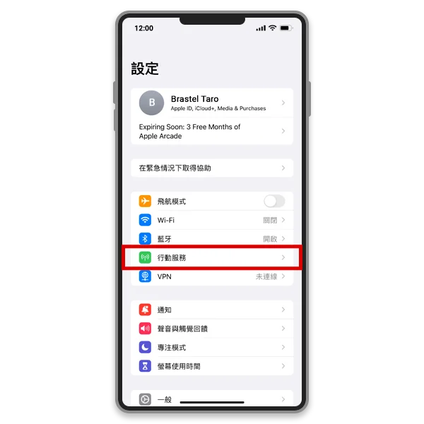 2. 點擊【行動服務】或【行動數據】(名稱可能因您的地區和 iOS 版本而異)。